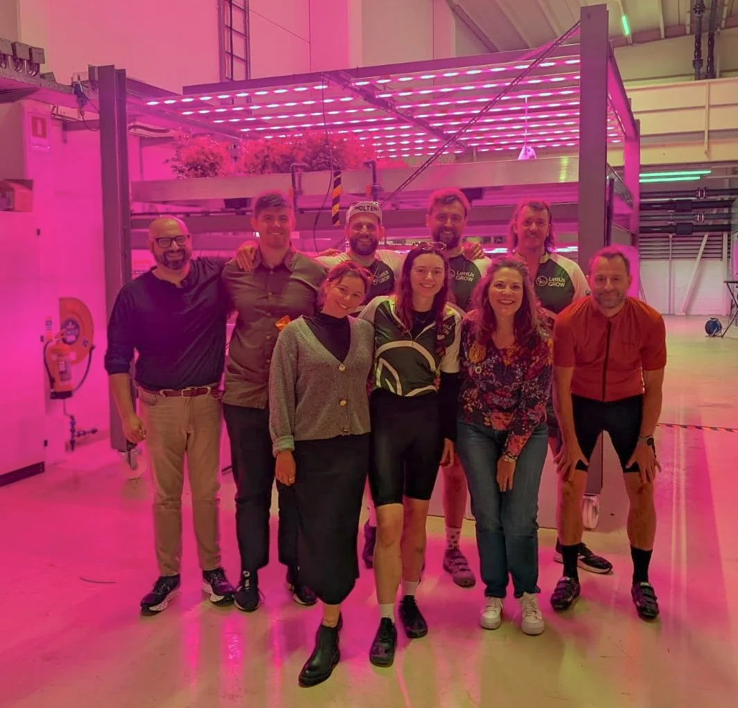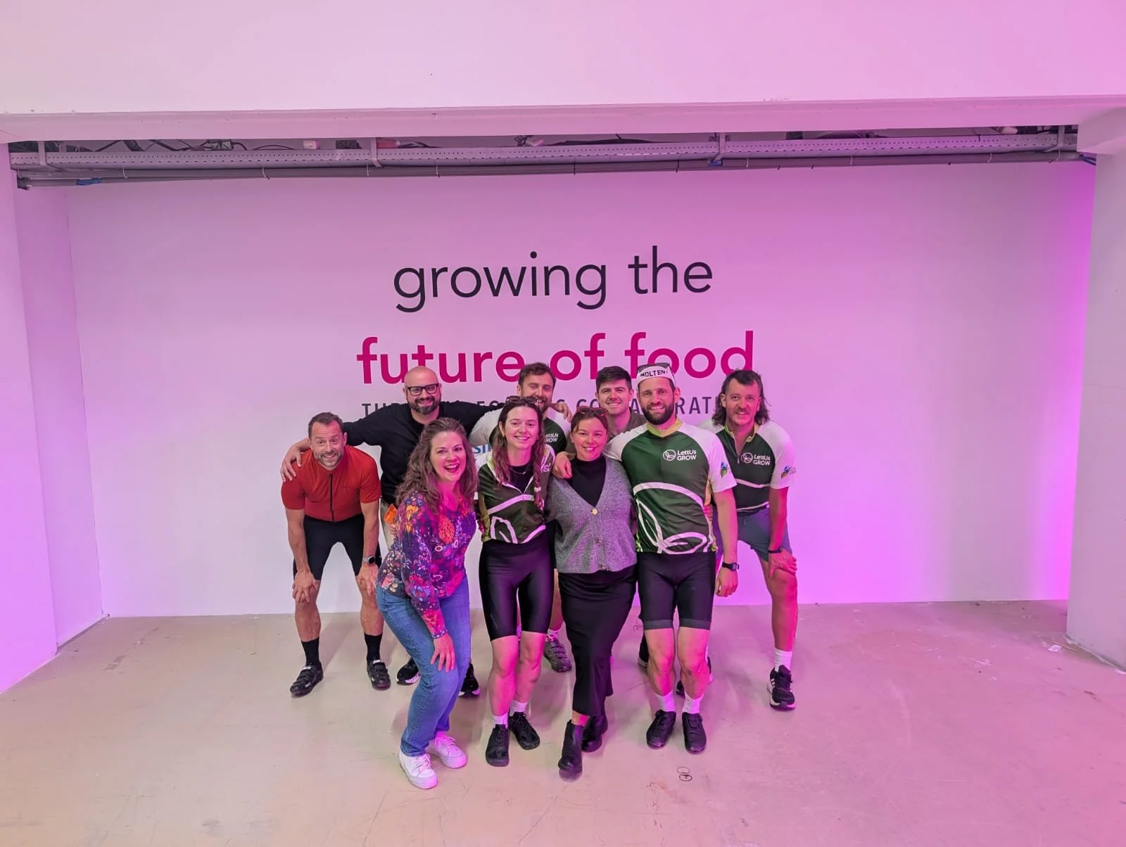 The LettUs Grow team stopping off at Infinite Acres while cycling to GreenTech 2025